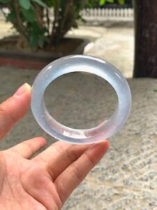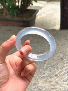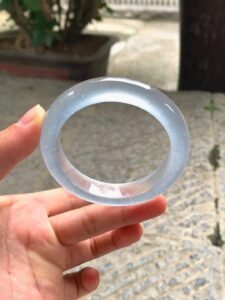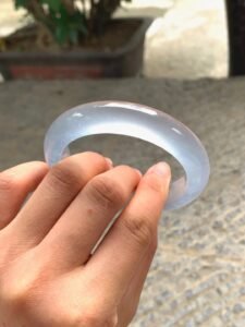 像这一只,市场标价大概是240,当时我是一百中出的。这一只我也只能说是高冰种,注意查看,其实镯子内部还是有轻微的棉感,但不是木纳的那种雪花棉。